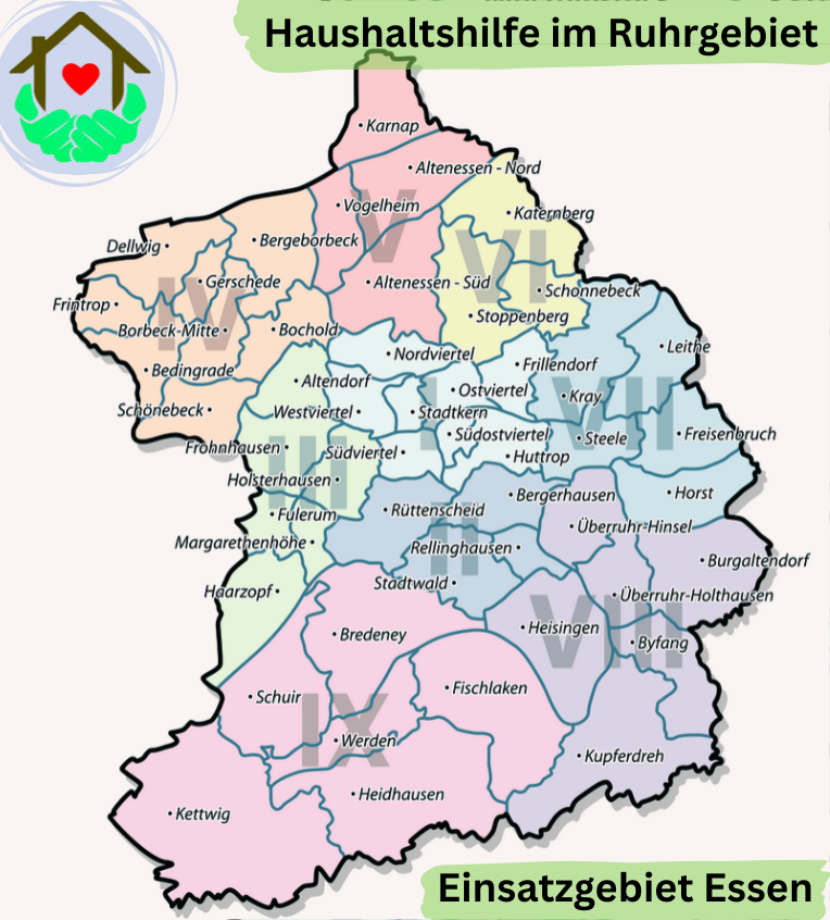 Schön, dass Sie den Weg zu uns, der Haushaltshilfe im Ruhrgebiet, gefunden haben. Wir sind Ihr verlässlicher Ansprechpartner für professionelle Haushaltshilfe und Alltagsunterstützung im Ruhrgebiet – mit Schwerpunkt Essen, Gelsenkirchen und der umliegenden Region.